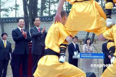 Phật giáo tại tuyến ngày 11/04/2007. Ngày 10/04/2007 tại Cung Cảnh Phúc (Gyongbokkung) thuộc miền bắc thủ đô Seoul. Thủ tướng Trung Quốc Ôn Gia Bảo và thủ tướng Hàn Quốc Lee Hae Chan có buổi nói chuyện với hơn 300 thanh niên Trung-Hàn. Sau buổi tiếp chuyện, hai thủ tướng Trung-Hàn thưởng thức màn buổi diễn thiếu lâm Kung-fu do võ tăng Thiếu Lâm buổi diễn và điệu nhảy theo phong cách trẻ( thanh niên Hàn Quốc.