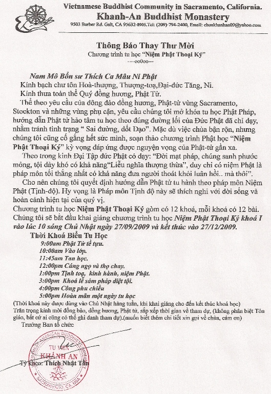 Lịch giảng dạy chương trình tu học "Niệm Phật Thoại Ký" http://www.buddhismtoday.com/thongbao/niemPhatthoaiky.htm