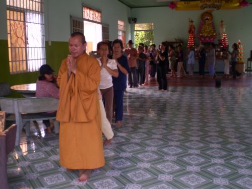 - Thầy Phổ Giác đang hướng dẫn mọi người đi kinh hành niệm Phật.
