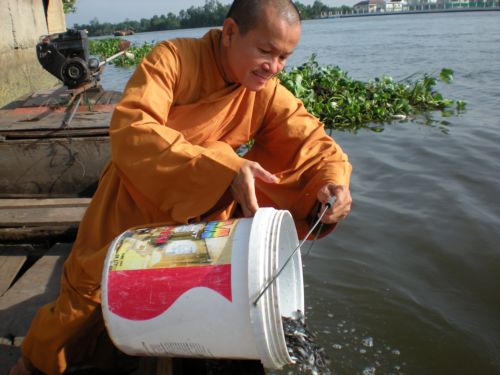 - Thầy Phổ Giác đang chú nguyện cho các loài được phóng sanh.