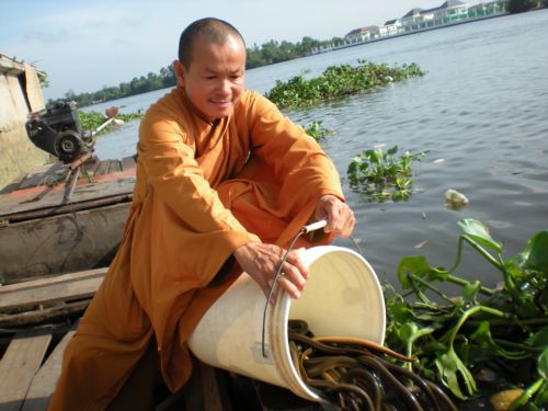 TP.HCM để làm lễ phóng sanh cho các loài cá, lươn do nhóm từ thiện
