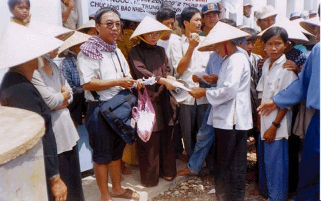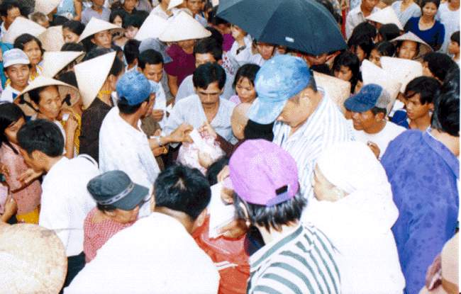 bao thư tiền mặt: 100 ngàn đồng VN. Tổng trị giá lần cứu trợ này là