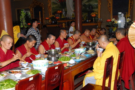 Buổi thọ trai của đoàn tại trai đường chùa Vạn Đức