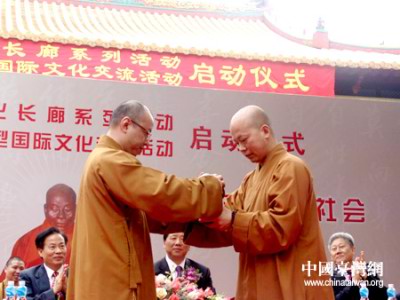 diễn đàn giao lưu văn hóa quốc tế: “ Đi Theo Dấu Chân Ngài Huyền Trang Đi Thỉnh Kinh”. Đến dự có các hiệp hội Phật giáo, các tăng nhân ở Trung Hoa đại lục và eo biển Đài loan. Về phía chính quyền có ông Diệp Tiểu Văn cục trưởng cục tôn giáo quốc gia và các quan chức tỉnh và địa phương. Hoạt động đã chọn ra hai tăng nhân. Tăng nhân Minh Hiền ở chùa Chân Như ( Giang Tây) và tăng nhân Tuệ Khoan đại diện chư tăng Phật Quang sơn ( Đài Loan) để hai bên công khai bày tỏ quan điểm của mình......