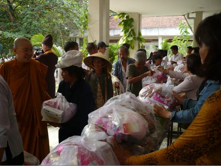Sau ba giờ đồng hồ qua những quãng đường rất xấu mù mịt bụi, chúng tôi cũng đến nơi. Trung tâm nằm khuất xa sau những đồn điền cao su thuộc một xã nghèo đặc biệt khó khăn của tỉnh. Chương trình từ thiện của phái đoàn ngoài việc trao tay những phần quà nhu yếu phẩm còn là buổi chia sẻ bài pháp thoại đầy ý nghĩa của Đại đức Tiến sĩ Thích Nhật Từ- Trụ Trì Chùa Giác Ngộ, với đề tài “Hạnh phúc trong tầm tay” nhằm giúp các trại viên phấn chấn, lạc quan hơn khi nhận ra cái quý nhất trên thế gian này không phải là cái “không đạt được” hay cái “đã mất đi” mà là hạnh phúc ta có được trong tầm tay ngay ở giây phút hiện tại.