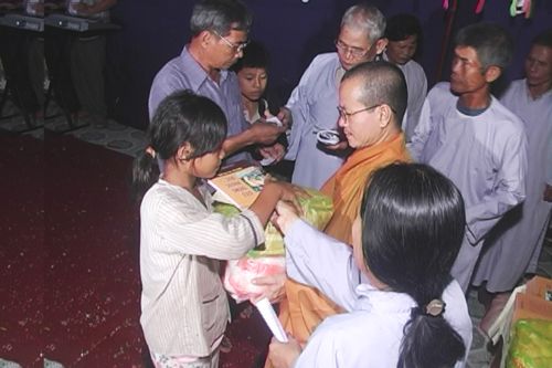 Ấn tượng sâu sắc nhất để lại trong lòng mỗi người là bằng những món quà đơn sơ do nhóm Phật tử Hải Hạnh ở Úc nhân chuyến về thăm quê hương Việt Nam đã dùng chút tịnh tài, tịnh vật của mình để sẻ chia cho hơn 200 gia đình nghèo với tổng giá trị gần 30 triệu đồng. Ngoài ra đoàn còn tặng các kinh sách băng đĩa do Thầy Nhật Từ biên dịch và thuyết giảng.