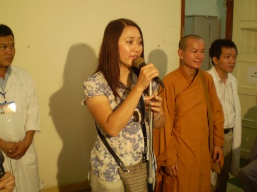 Phật tử Hải Hạnh đang phát biểu.