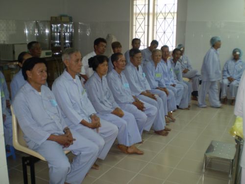 Ngồi chờ đến lượt được mổ mắt.