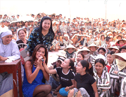 Chuyến đi cũng là dịp các nghệ sĩ tiếp xúc một thế giới hoàn toàn cách biệt với những nơi chốn hào nhoáng của các sân khấu chuyên nghiệp. Trải lòng, nhiệt tình và hết mình - đó là những gì anh em phạm nhân cảm nhận được. Những bó hoa hồng do Ban quản lý trại chuẩn bị chu đáo được chuyền tay nhau lên tặng, đã cho thấy sự trân trọng đối với anh em nghệ sĩ biết chừng nào. Nhất Thiên Bảo khuấy động trưa nắng với một loạt ca khúc Cho anh ngủ trong trái tim em, Em giờ đâu, Tình yêu tuyệt vời, Tình thôi xót xa; Hoàng Thiên Long nhẹ nhàng với Em ở đâu, Nghi Văn đằm thắm với bản hit Nắng xuân hồng, Việt Hà vừa dẫn chương trình, vừa duyên dáng trong ca khúc Anh còn yêu em không, ca sĩ trẻ Liêu Anh Tuấn trong ca khúc Mồ Côi và nhóm La Thăng với bản hip hop trẻ trung Vì sao may mắn, Trái tim hòa bình đã mang lại không khí sôi nổi cho sân trại - nơi mọi người tập trung lại như một buổi liên hoan vui vẻ. Nắng vẫn hầm hập trên đầu khiến người diễn lẫn người xem mồ hôi túa ra, nhưng không khí vẫn hết sức vui vẻ và thoải mái. Lần đi này đặc biệt Duy Mạnh với loạt ca khúc xã hội: Kiếp đỏ đen, Lời sám hối của kẻ hấp hối, Kẻ tham tiền... đã đem lại sự lắng đọng và nỗi ưu tư trên gương mặt các tội phạm trẻ. Và, phải nói đến Cindy Thái Tài - chị đã làm vỡ tung không gian nóng bức ấy. Giọng mềm mại và ngọt ngào, Cindy hát Hào hoa, Bên em là biển rộng... và giao lưu với phạm nhân trong một thái độ hết sức cởi mở khiến mọi người hoàn toàn bất ngờ. Một ngày tự do và dường như quên đi cái cảm giác của hàng rào thép gai vây quanh. Những thông điệp mà đoàn từ thiện mang đến có thể khiến nhiều người vượt qua những định kiến xã hội, tăng thêm tinh thần để học tập và cải tạo tốt hơn.