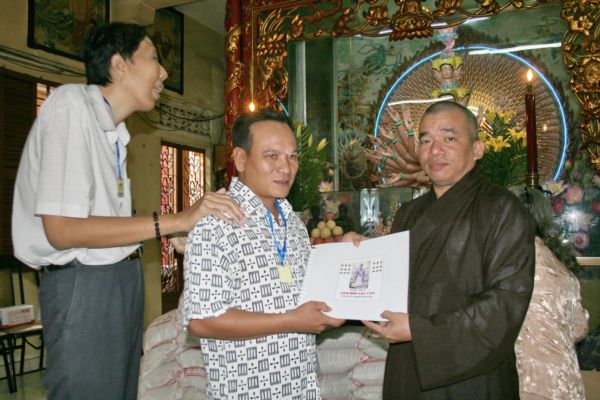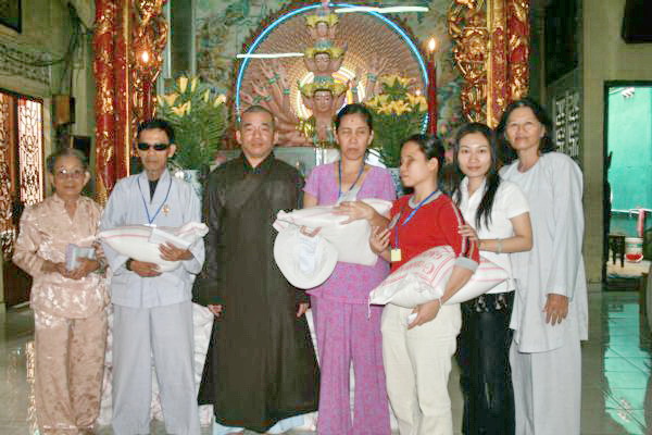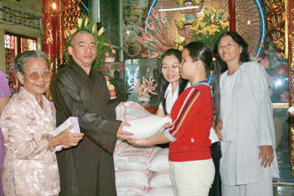 Trì chùa Giác Ngộ, ngoài việc phát gạo cho đồng bào nghèo dịp rằm tháng