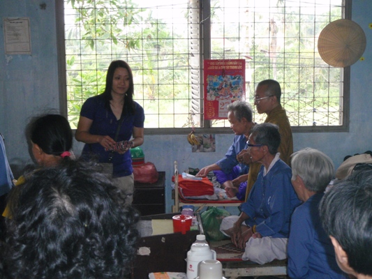 Kết thúc bài pháp thoại, các phần quà được trao trên tay đến từng người, cùng với những lời chúc các bác sống vui sống khoẻ, thỉnh thoảng chúng con sẽ đến thăm các bác.