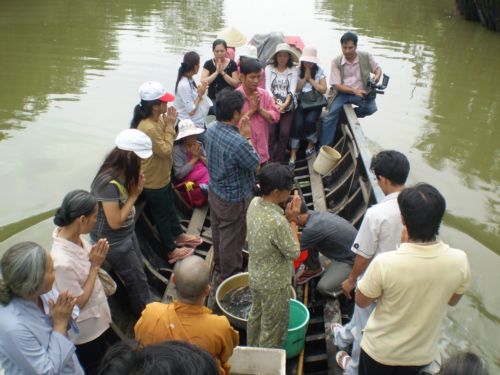 Sau khi phát quà cho 400 hộ nghèo ở xã Nhị Thường, đoàn trở về sông Phù Cát, xã Kim Hòa làm lễ phóng sanh cho một số loài cá cùng những lời chú nguyện mong cho chúng được siêu sinh thoát hóa được trở lại làm người để giúp ích cho xã hội. Những âm điệu Niệm Phật “Nam mô A DI ĐÀ PHẬT” của đoàn người đã vang dội khắp dòng sông Phù Cát để trợ duyên cho vô số chúng sanh, nương nhờ Phật lực mau được vãng sanh.