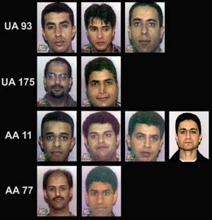 Vào ngày 19-09, cơ quan điều tra liên bang FBI đã công bố danh sách 19 tên không tặc cướp bốn máy bay để thực hiện phi vụ chết, tấn công Trung Tâm Thương Mại Thế Giới và Ngũ Giác Đài sáng ngày 11-09, tất cả đều là người Trung Đông. Nhân viên FBI đã bắt đầu từ bản danh sách hành khách của bốn chiếc máy bay bị không tặc. Sau khi xem xét đã nhặt ra 19 tên khả nghi nhất và khi đã có tên của nghi phạm FBI mới truy nguyên nguồn gốc của từng người, xuất thân từ đâu, từng có hoạt động gì trong quá khứ. Điều đáng ngạc nhiên, 19 tên không tặc này đều xuất thân từ những gia đình trung lưu và thượng lưu ở Trung Đông, họ có trình độ học vấn cao, trong số có ít nhất là bảy người đã từng học lái máy bay. Trong bản danh sách 19 tên này, FBI tin rằng Mohamed Atta, 33 tuổi, là thủ lãnh của nhóm, là con của một luật sư nổi tiếng ở Ả Rập. Atta theo học tại trường đại học kỷ thuật Hamburg, Đức và tốt nghiệp cao học về ngành điện tử. Ngày 18-05-2000, y được Lãnh sự quán tại Berlin cấp visa để nhập cảnh Hoa Kỳ. Có ít nhất hai trong số các tên không tặc cũng xuất thân từ trường Hamburg, là Marwan Al-Shehhi (em họ của Atta) và Ziad Jarrachi. Tất cả những tên không tặc này dùng thẻ tín dụng của mình mua vé máy bay qua mạng internet để thực hiện vụ khủng bố từ ngày 25 đến 28 tháng 8 vừa qua. Sau đây là sơ lược tên tuổi các tên không tặc của từng chuyến bay: