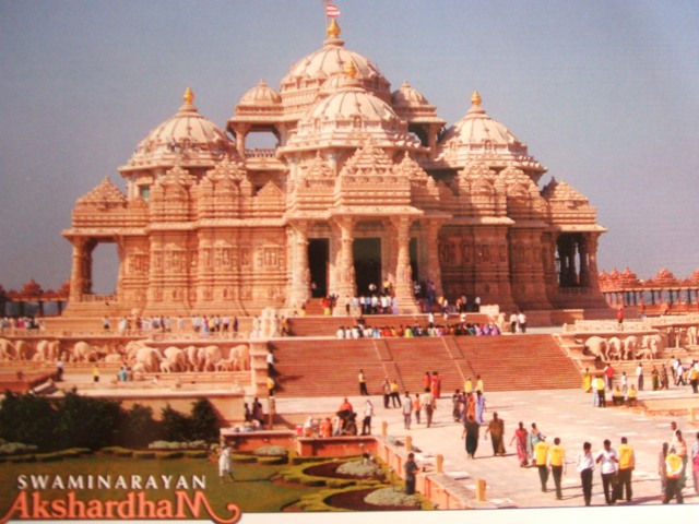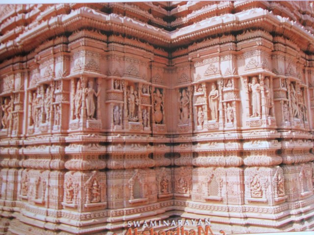 Đền SWAMINARAYAN AKSHARDHAM, vị trí nằm trên bờ sông Yamuna thuộc thủ đô New Delhi . Nó được khánh thành bởi Ngài Tổng Thống Ấn Độ APJ Abdul Kalam vào ngày 6 tháng 11 năm 2005. Đây có thể nói là một công trình kiến trúc ĐIÊU KHẮC ĐÁ đồ sộ lớn nhất của Ấn Độ trong thời đại ngày nay. Công trình bao gồm với 10 triệu tảng ĐÁ HỒNG xây dựng trên một mãnh đất hơn 200 mẫu. Đền SWAMINARAYAN AKSHARDHAM đã nói lên toàn bộ nền văn hoá, lịch sử, kiến trúc nghệ thuật của Ấn Độ với sự huy hoàng tột đỉnh của nó. Được thiết kế bởi kiến trúc sư Vivendva Sompura trên sự phát hoạ của Giáo Si Hindu giáo Pramukh Swani Mahajaj. Công trình được xây dựng với lực lượng điêu khắc hùng hậu 7000 người thợ, Sau 5 năm khởi công xây dựng ngôi đền uy nghi lộng lẫy huyền diệu bậc nhất tại Ấn Độ này đã được hoàn thành. Ngôi Đền Chính (chánh điện) kiến trúc của nó là một kiệt tác trong ĐÁ HỒNG và ĐÁ CẨM THẠCH TRẮNG cao 141 feet và rộng 316 feet, chiều dài 30 feet, với 234 cây cột được trang trí lộng lẫy với 20.000 bức điêu khắc và hình tượng của các VỊ THẦN và 11 mái vòm cao khồng lồ làm bằng đá. Lâu đài được tạo đứng trên 148 tượng CON VOI khổng lồ và nó được bao quanh bởi một bức họa trong truyện cổ Thiên Anh Hùng Ca. Ngoài ra, còn nhiều Điện Thờ khác cũng điêu khắc bằng đá minh hoạ về cuộc đời của vị Giáo Chủ Đạo HINDU( gồm phòng triễn lãm, phòng chiếu phim màng hình 2000 inches, và phòng trưng bày). Hiện nay Tín đồ Đạo HINDU và Khách thập phương trên khắp thế giới đến chiêm bái và tham quan ngôi đền này mỗi ngày trên 5000 người .