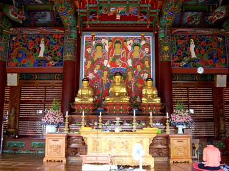 Bàn hương án tại chùa Phổ Hiền, đảo Jeju.