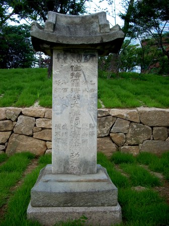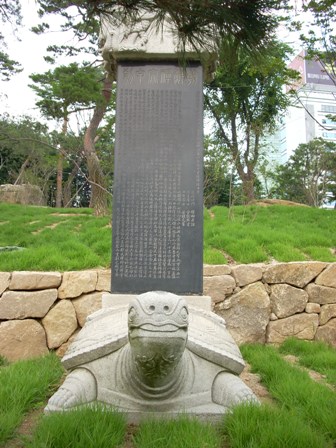 đài trước chùa Quan Âm, đảo Jeju. Tượng tạc bằng đá trắng, bệ thờ, đỉnh