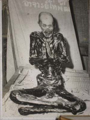 thiền sư không bị hủy hoại, da thịt khô, sáng, mắt hơi mở, tượng
