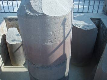 trong tháp bát giác, chúng tôi thấy có những viên đá tròn, cao khoảng 4