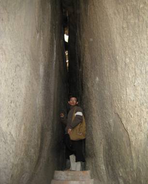 ngang qua một lối đi hẹp chỉ vừa đủ một người, hai bên là vách núi thẳng