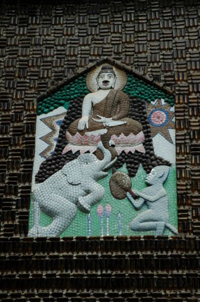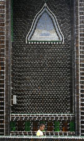 chùa này bắt đầu sử dụng những vỏ chai phế thải để trang trí trong các
