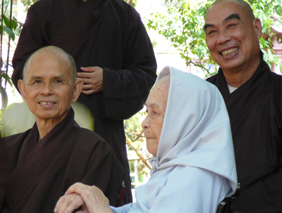 Sư Ông Làng Mai (trái), Sư Bà Diệu Trí (giữa), Sư Thúc Chí Mậu (phải)