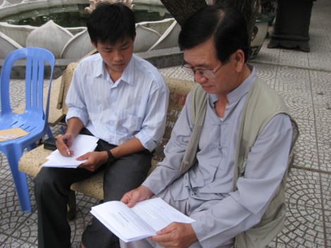 phóng viên Phattuvietnam.net thường trú tại TP.HCM đang phỏng vấn NS Vũ