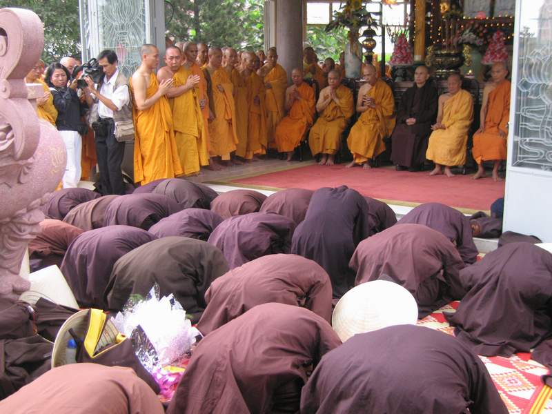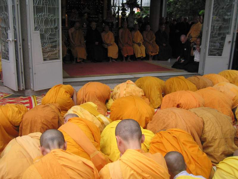 Tăng thân Làng Mai đảnh lễ chư tôn