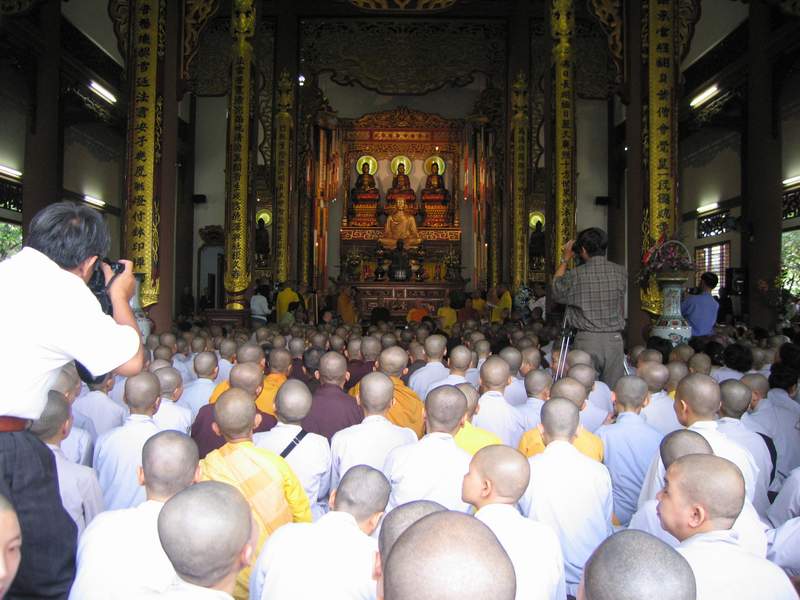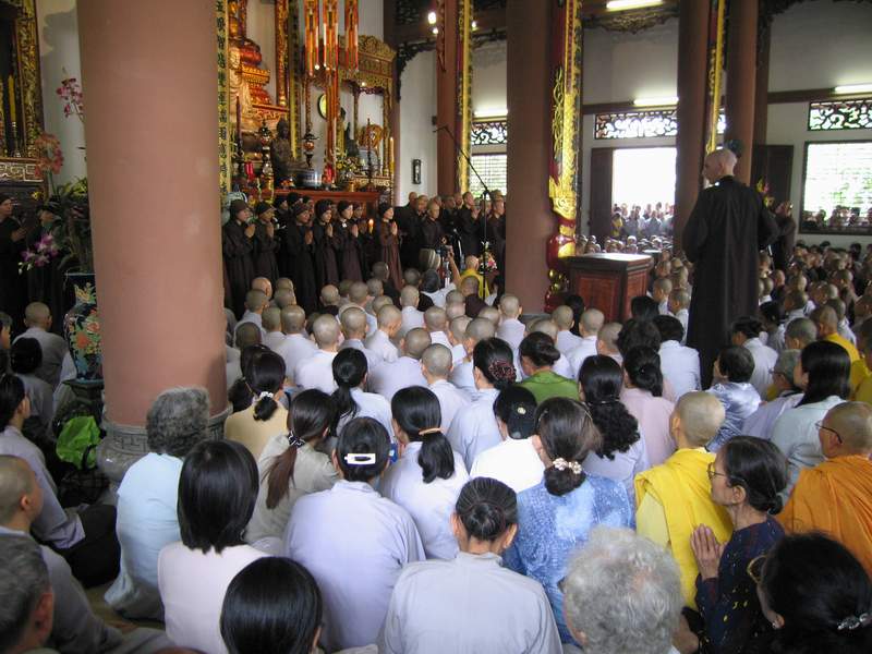 viện và quí Phật tử đang chăm chú lắng nghe thiền sư thuyết giảng |