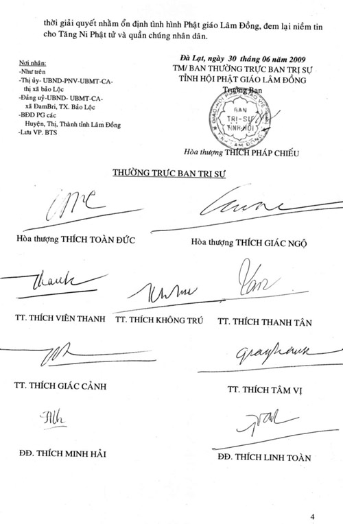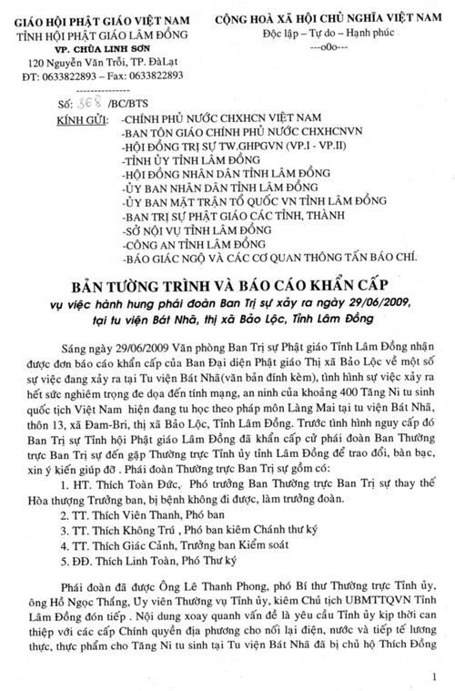 sự Phật giáo Tỉnh Lâm Đồng nhận được đơn báo cáo khẩn cấp của Ban Đại