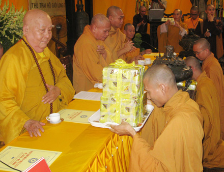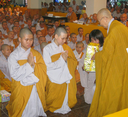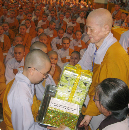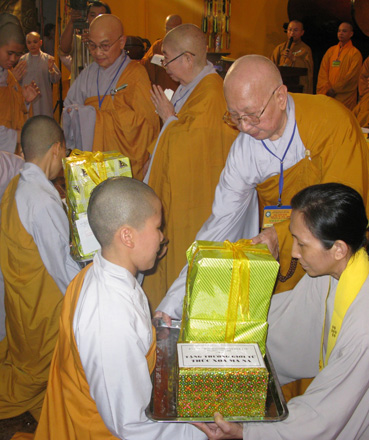 Chư tôn giáo phẩm phát thưởng cho các vị Tỳ kheo và Sa di