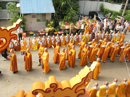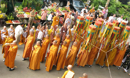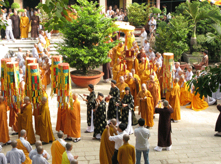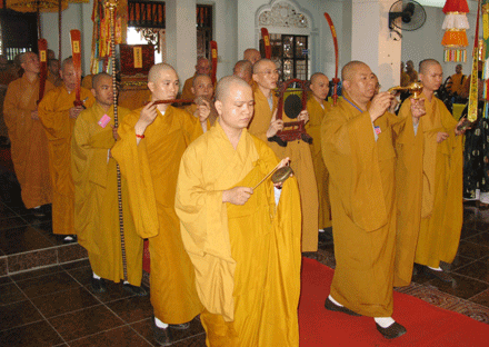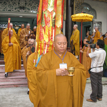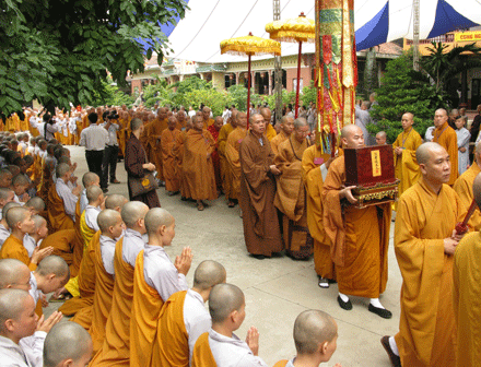 Hộp đựng giới bổn được rước đi rất trịnh trọng