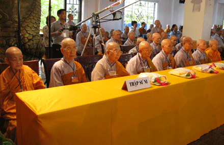 Chủ tịch HĐTS; HT. Thích Đức Nghiệp - Phó Thư ký HĐCM cùng Chư tôn Giáo