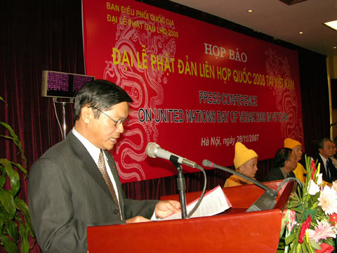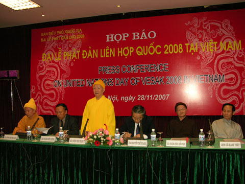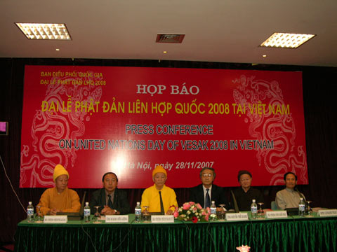 (PTVN) Chiều nay, 28/11/2007, tại Trung tâm hội nghị Quốc tế (11 Lê Hồng Phong) đã diễn ra buổi họp báo về việc tổ chức đại lễ Phật đản Liên hợp quốc 2008 tại Việt Nam.