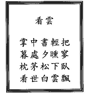 Trong tay trang sách hững hờ, Chiều hôm nắng quái cõi bờ mênh mông. Gối tranh nằm khểnh cội tùng, Xem nhân thế đó bềnh bồng trắng mây. Khán vân Chưởng trung thư khinh bả, Mộ xứ tịch huân liêu. Chẩm mao tùng hạ ngọa, Khán thế bạch vân phiêu.