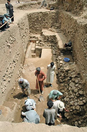 | Nhóm của Tarzi khai quật Đại tháp Bamiyan, là nơi thờ phượng Phật giáo vào năm 2006. |